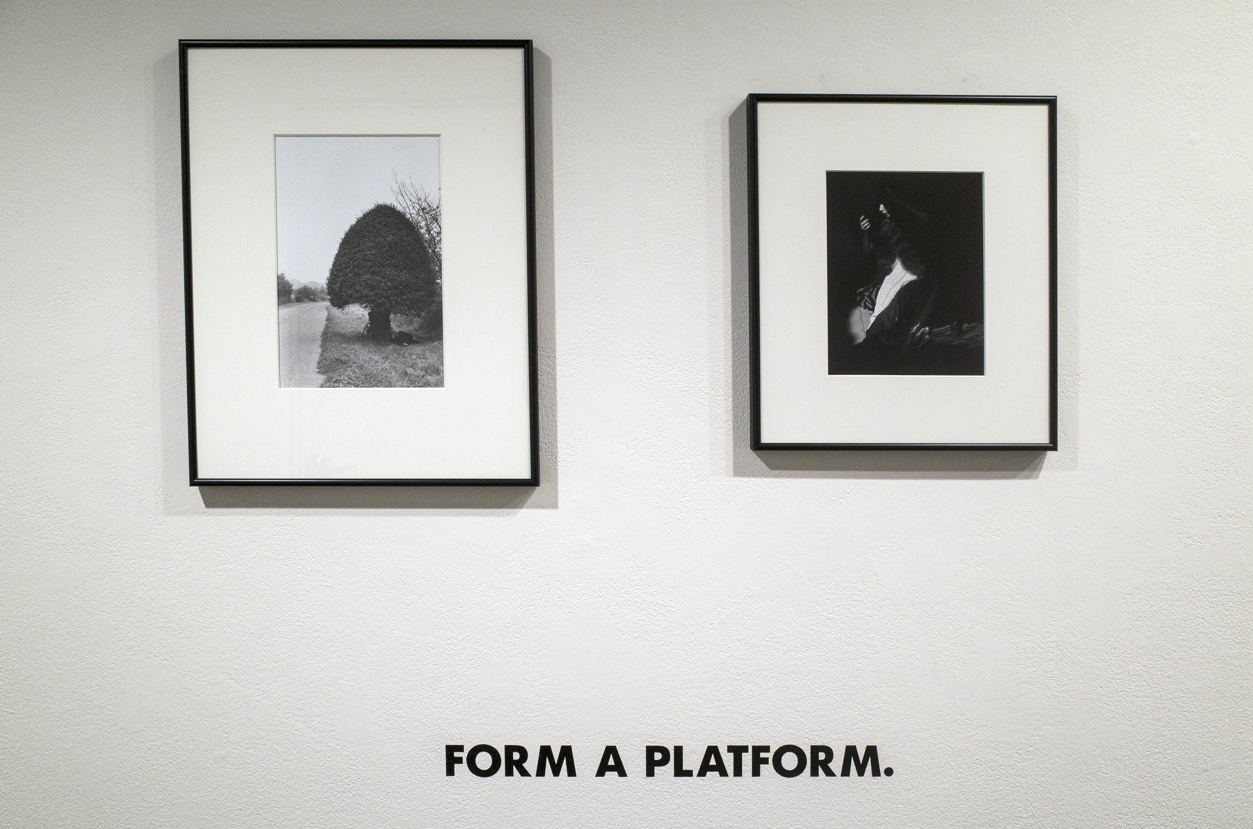 Thirty four framed photographs from the Richard Brush Gallery collection, vinyl text. 2014.